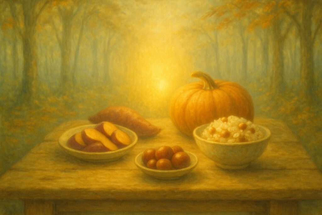 暦の上では仲秋で、秋土用にはまだ時間がありますが、旬の秋の味覚(サツマイモや栗など)を取り入れて早めに脾臓を労わってあげるのがよさそうですね。
