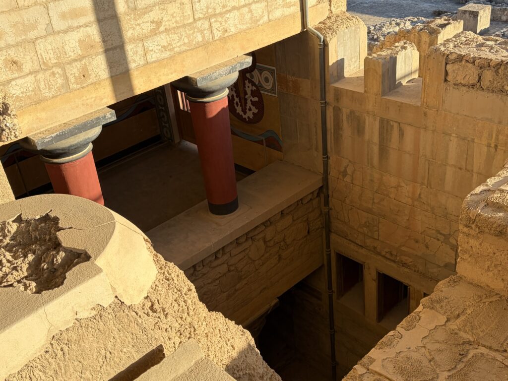 考古学博物館で見た、数々の色鮮やかで繊細な出土品や美しいフレスコ画とこのクノッソス宮殿に漂う柔らかく開放的エネルギーを合わせると、やはり美しく豊かな文明が存在していたことは確かであったように感じられました。
